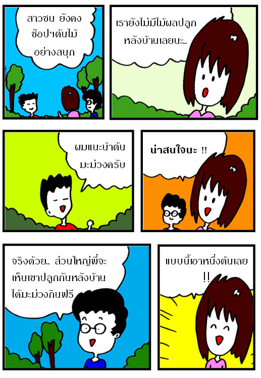 สาวซน "เอ.. เรายังไม่มีไม้ผลไว้ปลูกหลังบ้านเลยนะ จะได้เอาไว้เก็บผลไม้กินฟรีๆ กับเขาบ้างอะ"